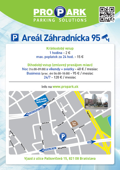 The company ProPark Services s.r.o. provides services of the operator and attendant in the premise: ProPark Services s.r.o., Chorvátska 8, 811 08 Bratislava, ID: 54 726 735, VAT number: 2121773577